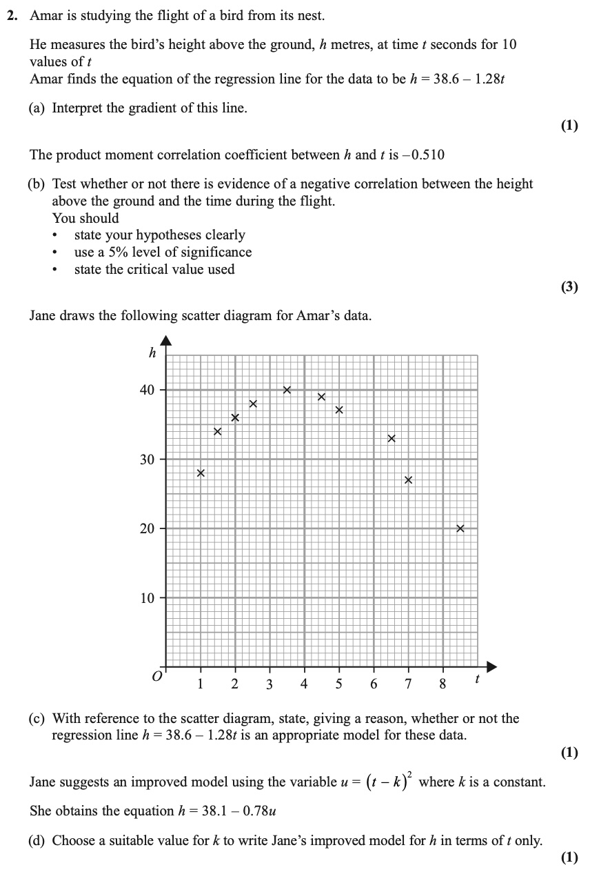 Edexcel : A-Level : Statistics : June 2024: Paper 31 – Q2